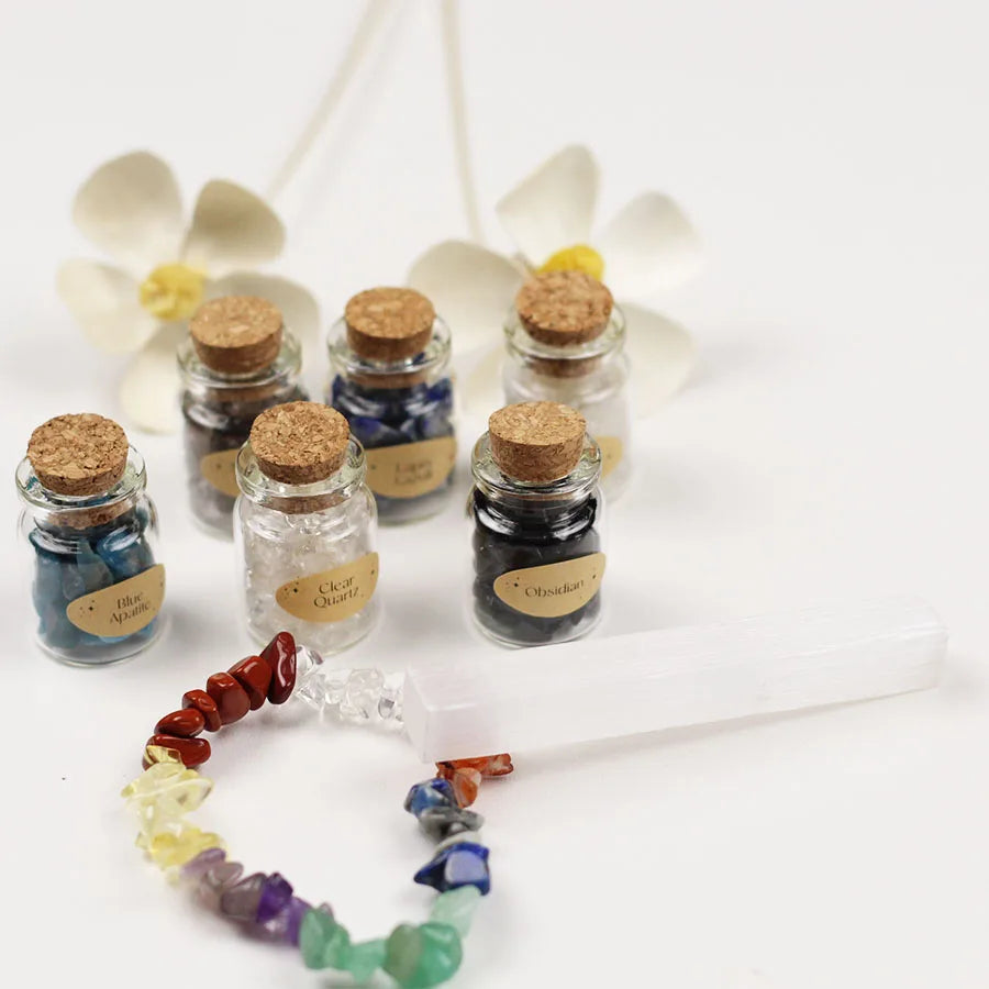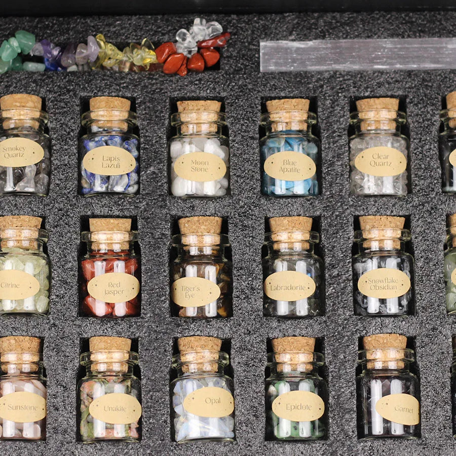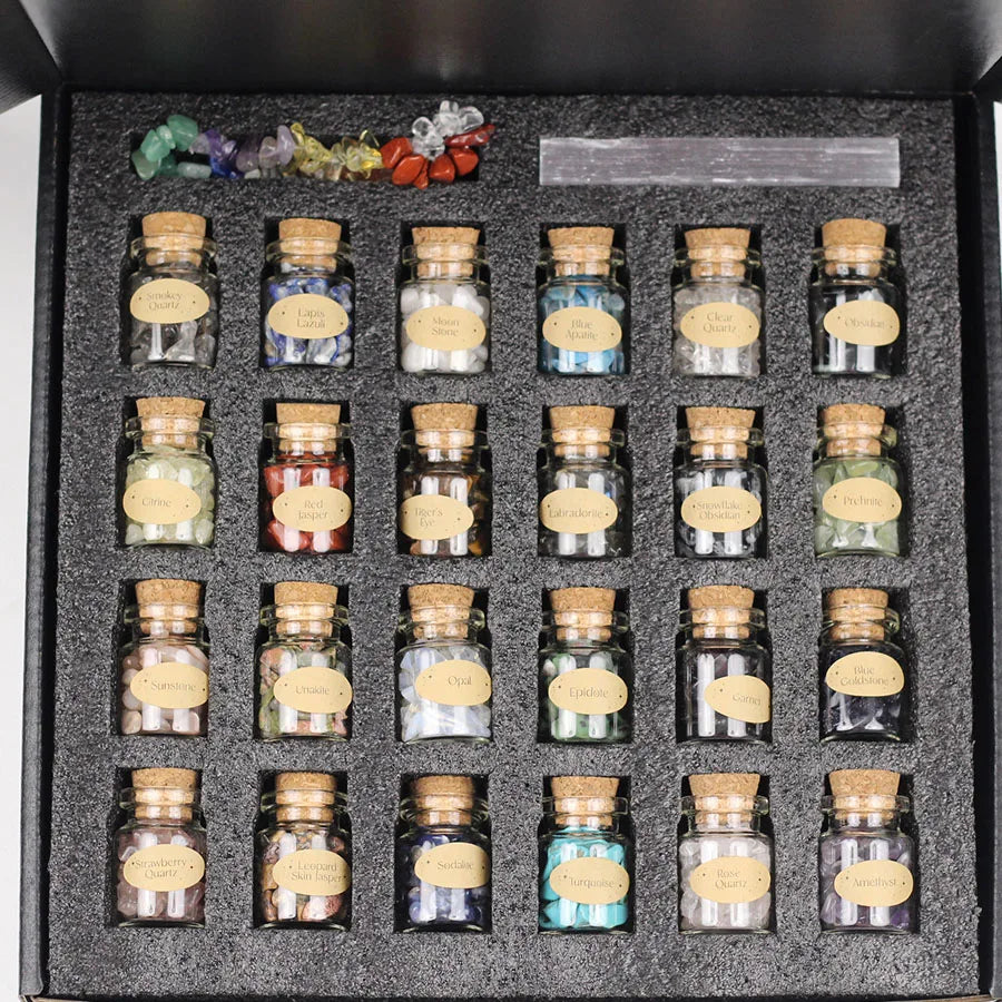 Vårt 30-pack med helande kristaller erbjuder en mångfald av naturliga kristaller med olika egenskaper som sägs främja hälsa och välbefinnande. Varje kristall anses ha unika energier och egenskaper, och de kan användas för meditation, chakra-balansering, eller helt enkelt för att skapa en lugn och harmonisk atmosfär i ditt hem eller arbetsplats. Med detta 30-pack får du en mångsidig samling av helande kristaller för att utforska deras potentiella fördelar och njuta av deras vackra estetik.