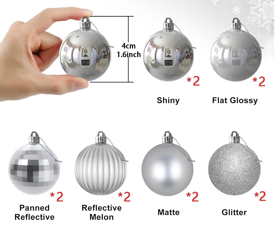 De är lätta, säkra och fria från skadliga kemikalier, vilket gör dem perfekta även i hem med barn eller husdjur. Med flera färger och storlekar att välja mellan kan du enkelt mixa och matcha för att skapa en unik och personlig gran – från stilrent silver till varmt rött eller gnistrande guld.