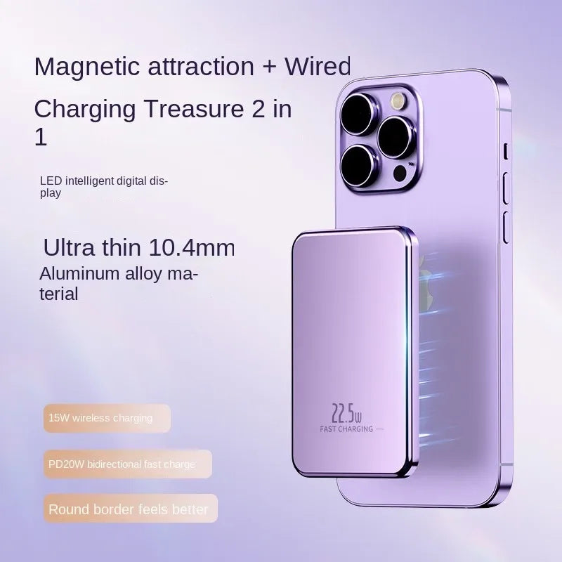 Denna powerbank stöder 15W trådlös laddning med magnetisk precision, vilket gör den kompatibel med Magsafe-enheter och andra trådlöst laddbara enheter. -
